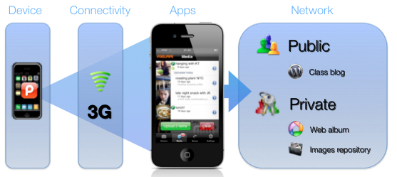 De nos jours, nombreux sont les apprentis boulangers, pâtissiers et confiseurs qui rencontrent des difficultés au moment d’illustrer leur dossier de formation avec des expériences concrètes réalisées sur leur lieu de travail. Pour les aider à combler ce manque d’exemple, nous avons développé un système mobile, couplé à une module en ligne qui leur permet, en quelques secondes, d’immortaliser un moment précis dans la réalisation d’une recette faite sur leur lieu de travail et de l’envoyer automatiquement sur leur porfolio en ligne. Ce système est composé de deux éléments : 1) Un iPhone et son application spécifique pour la capture et l’envoi automatique d’images ou de commentaires directement dans le portefolio personnel de chaque apprenti et 2) d’un outil en ligne qui permet de rassembler toutes les expériences d’un apprenti dans un seul endroit accessible uniquement par l’apprenti.