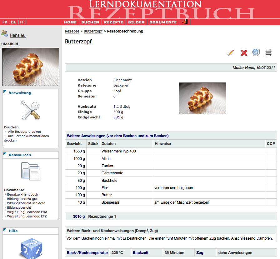 Ce système a également été proposé à l’entreprise Richemont (centre de compétences international et indépendant relevant de la branche boulangerie-pâtisserie-confiserie). Après quelques mois de développement supplémentaires pour mettre cette version à niveau en fonction de leur nouvelle ordonnance, ce système sera proposé dès le début de l’année scolaire 2011-2012, comme outil principal que devront utiliser tous les apprentis de Suisse pour créer leur livre de recettes.