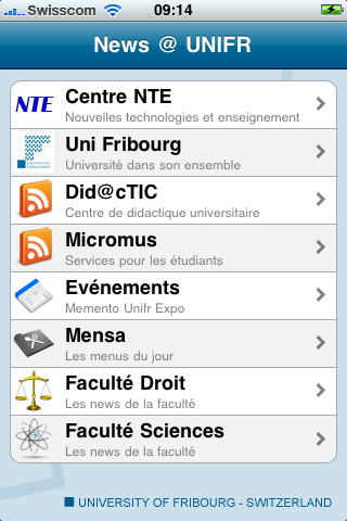 News@UNIFR Application iPhone qui regroupe les fils RSS les plus populaires de l’Université.